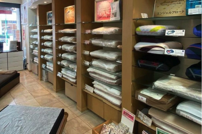 東京都府中市エリアの府中駅から徒歩5分、府中競馬正門前駅や府中本町駅も近くにある当店は、さまざまなブランドの枕やベッドマットレス・敷布団・掛け布団などを取り扱っている寝具店です。